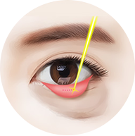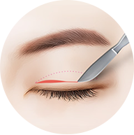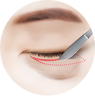 below the lash line. - Excise loose skin