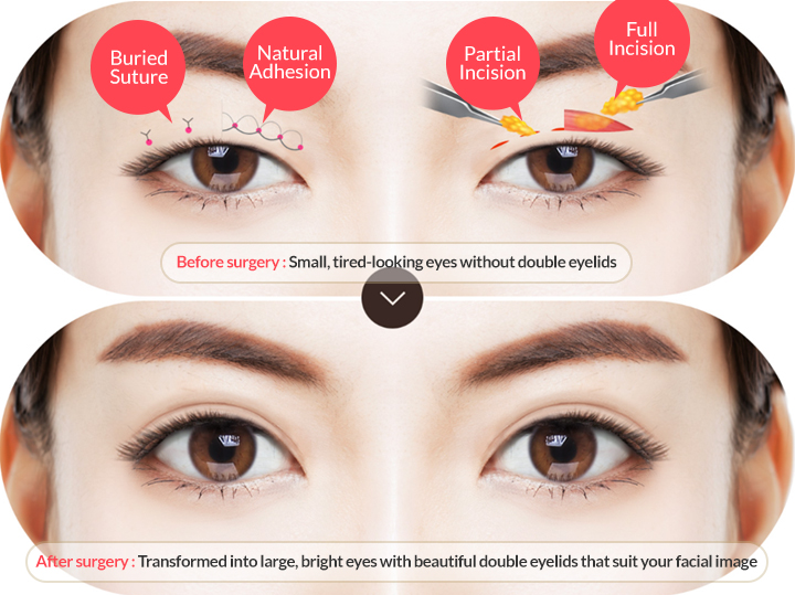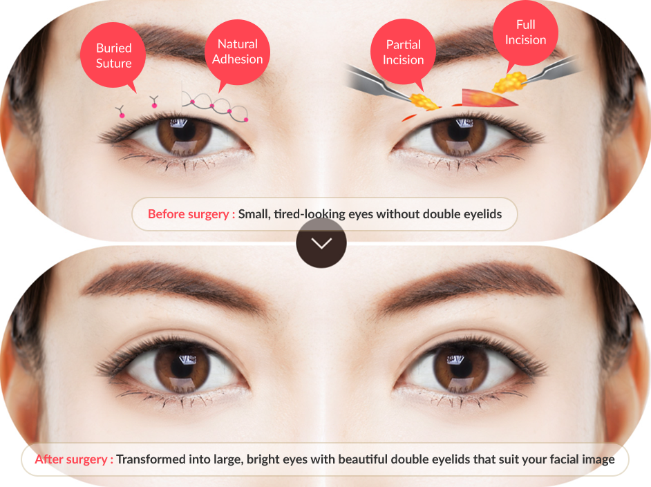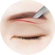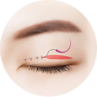 and suture beneath the brow, creating a natural and youthful look.