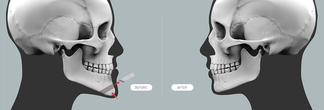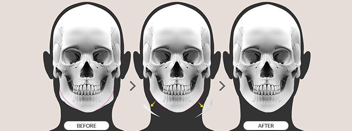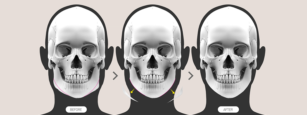 removes the excess bone along the jawline and beneath the ears