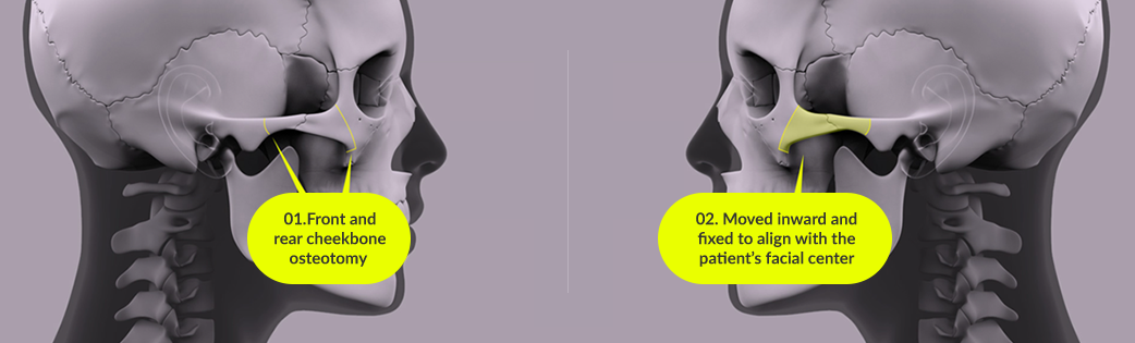 An incision near the sideburns and inside the mouth allows the cheekbone