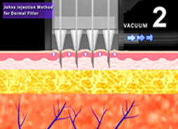 uses a multi-needle injector to deliver hyaluronic acid into the dermis,